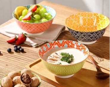 Ceramic Cereal Bowls, 23 Oz Colorful Soup Bowls, Deep Porcelain Bowl, Set of 6