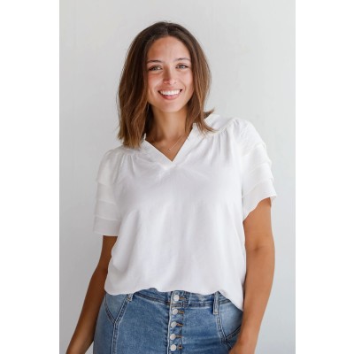Women's Dressy Casual Tops Business Work Blouses White Button Down Shirts Cap Sleeve V Neck Tshirt